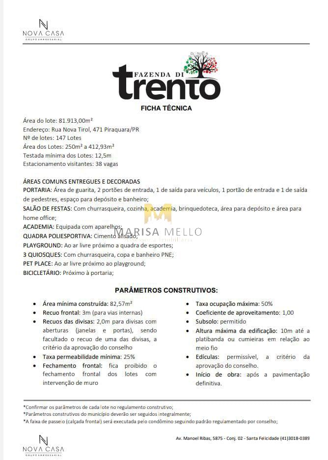 Condomínio Fazenda di Trento: Lote em Condomínio, 250m², à venda em Piraquara, Vila São Tiago